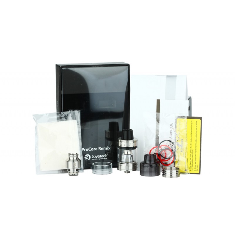 ProCore Remix è il primo Joye RTA / RDA. Può anche essere usato come atomizzatore sub-ohm, a seconda di quale preferisci. Con un sistema di serbatoio rigenerabile, puoi costruire bobine doppie o singole con l'aiuto del tappo. Essendo semplice e conveniente, l'enorme slot per flusso d'aria è pensato per una grande produzione di vapore e un sapore ottimale.