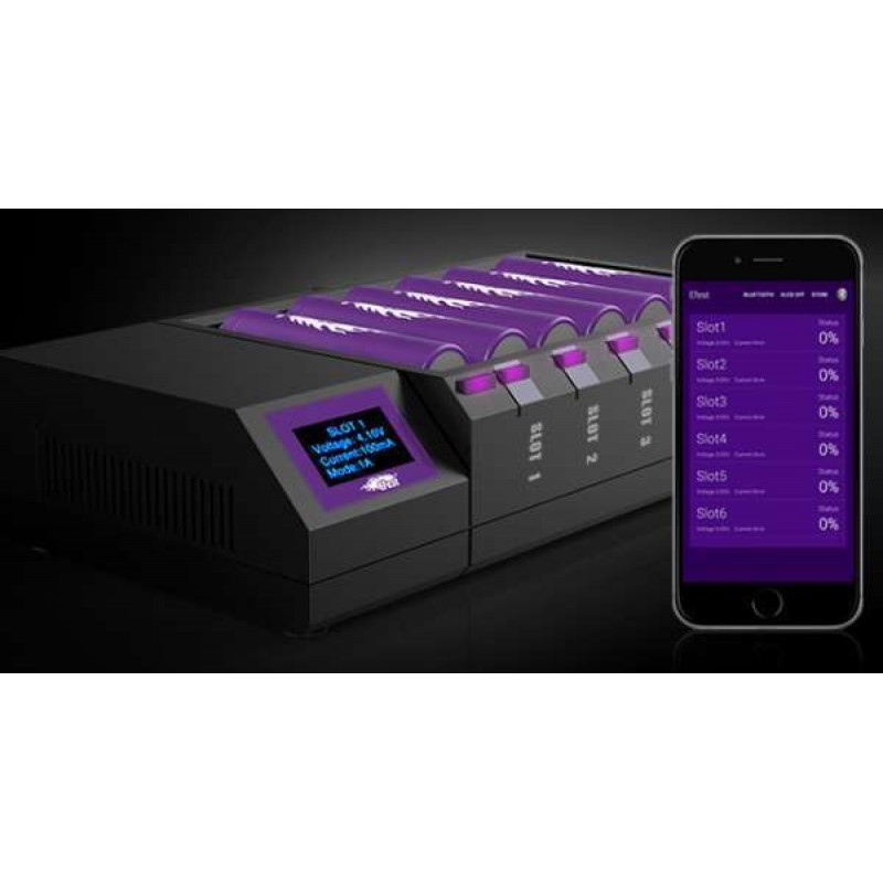 Il nuovo  charger a 6 piste con canali indipendenti, schermo oled e funzione Bluetooth, che serve a monitorare e impostare le sei piste dal cellulare.  Il pratico schermo oled permette di monitorare tutti i parametri delle batterie. Inoltre la pratica app da scaricare sullo smartphone permette di visualizzare e modificare tutte le impostazioni del charger.
