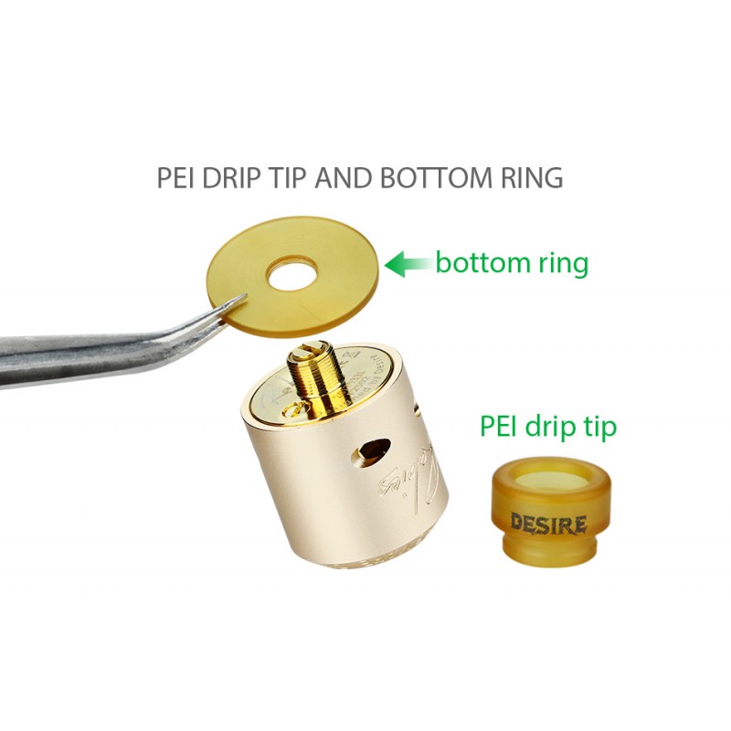 Ecco la Rabbia RDA di Desiderio. Il ponte di costruzione estremamente grande offre più spazio per la costruzione di bobine, specialmente per bobine Clapton complesse. E il sistema di controllo del flusso d'aria laterale regolabile fornisce un flusso d'aria massiccio durante lo svapo. Puoi goderti un'enorme nuvola di vapore densa.