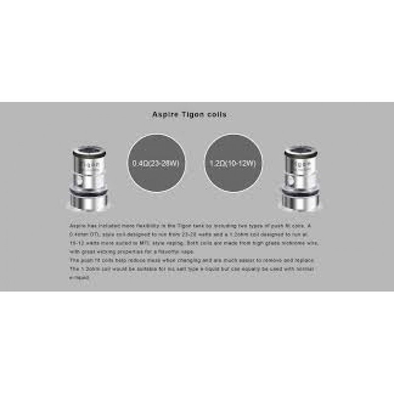 Ecco che arriva la bobina di sostituzione Aspire Tigon che è appositamente progettato per l' Aspire Tigon serbatoio . Con la resistenza 1.2ohm e 0.4ohm , l'Aspire Tigon può portare grande esperienza vaping.